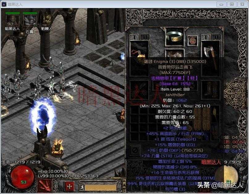 暗黑破坏神2很多非法师职业在前中期发育阶段有点吃力的原因,除输出能力不够之外,还有一个非常关键的因素就是跑图能力偏弱。法师由于自身带有神技“传送”技能,跑图和刷装备也能更加效率。当然其他职业也可以使用带有“聚气传送”的装备获得使用一定次数的“传送”技能,而最一劳永逸的则是想办法做出一个后期大件符文之语——谜团。