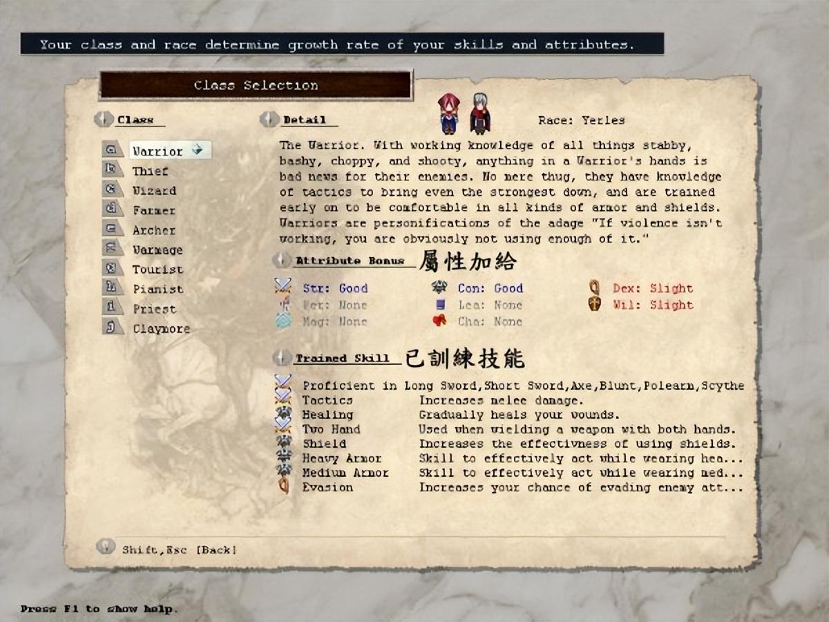 决定角色的初始属性数值,掷出的数值范围依"种族"和"职业"而定。
