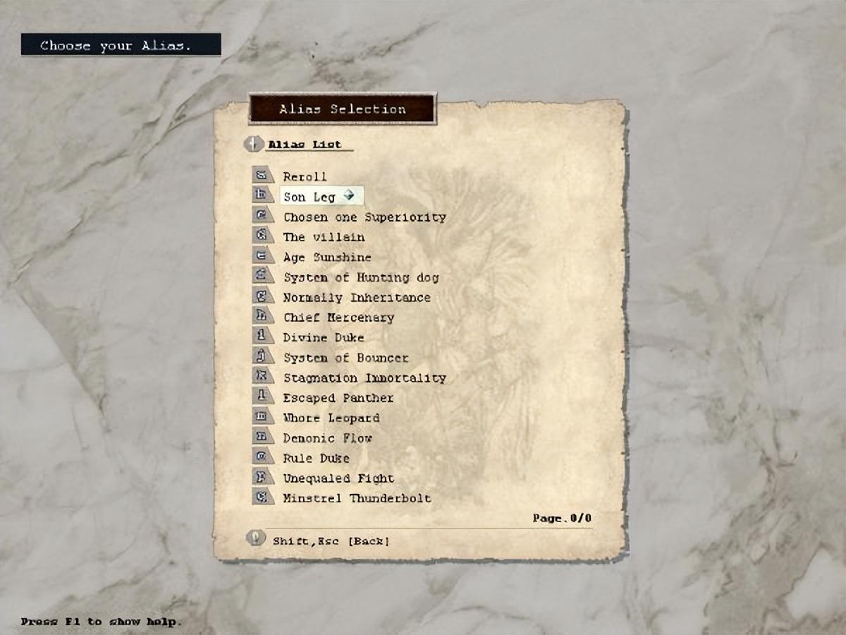 ※enter-重掷/p-外观设定/shift或esc-确定。