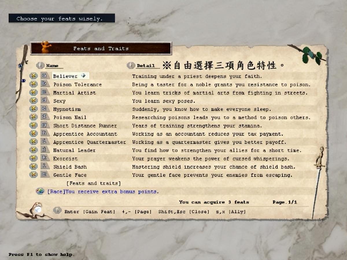 初始能自由选择三个特性,之后角色每5级能再选择一个。
