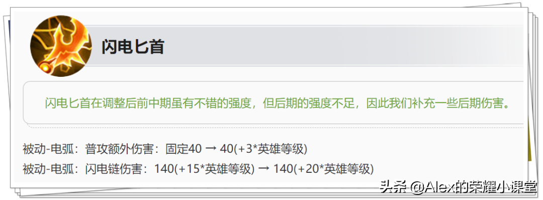 ②被动电弧的闪电链伤害提升了5点等级成长,即英雄满级时增加了70点伤害,输出能力得到了全面提升。