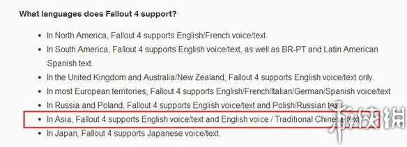 同时,官方还带来另一个好消息,那就是他们正式确认了《辐射4》在面向亚洲发布时会支持繁体中文(即英文配音、英文字幕/英文配音、中文字幕两个选项)。早先零售商如巴哈姆特已经上架了《辐射4》中文版,如今官方正式确认中文版的存在也是给各位玩家吃了一颗定心丸,大家现在可以肆意剁手买买买了。另外,还需注意一点的是,B社并没有特别指明中文版的平台,所以推测全平台中文的可能性较大,目前Steam页面暂时连PC配置也没有更新,有一定的滞后性,还需要再观察才能确认。