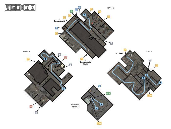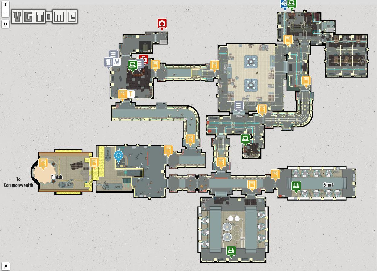 与普雷斯敦·加维和其余义勇兵成员碰面后,同意帮助他,这时他们会提供火力支援。在博物馆3楼有感知小人,可以永久提高感知。在司吉特用终端机的桌子底下有漫画,附赠全像卡带。来到一楼,前往地下室。你可以选择:使用发卡打开安全门或者骇入终端机打开安全门。进入安全门拿到核融合核心后通过加维等人所在的房间到楼顶。
