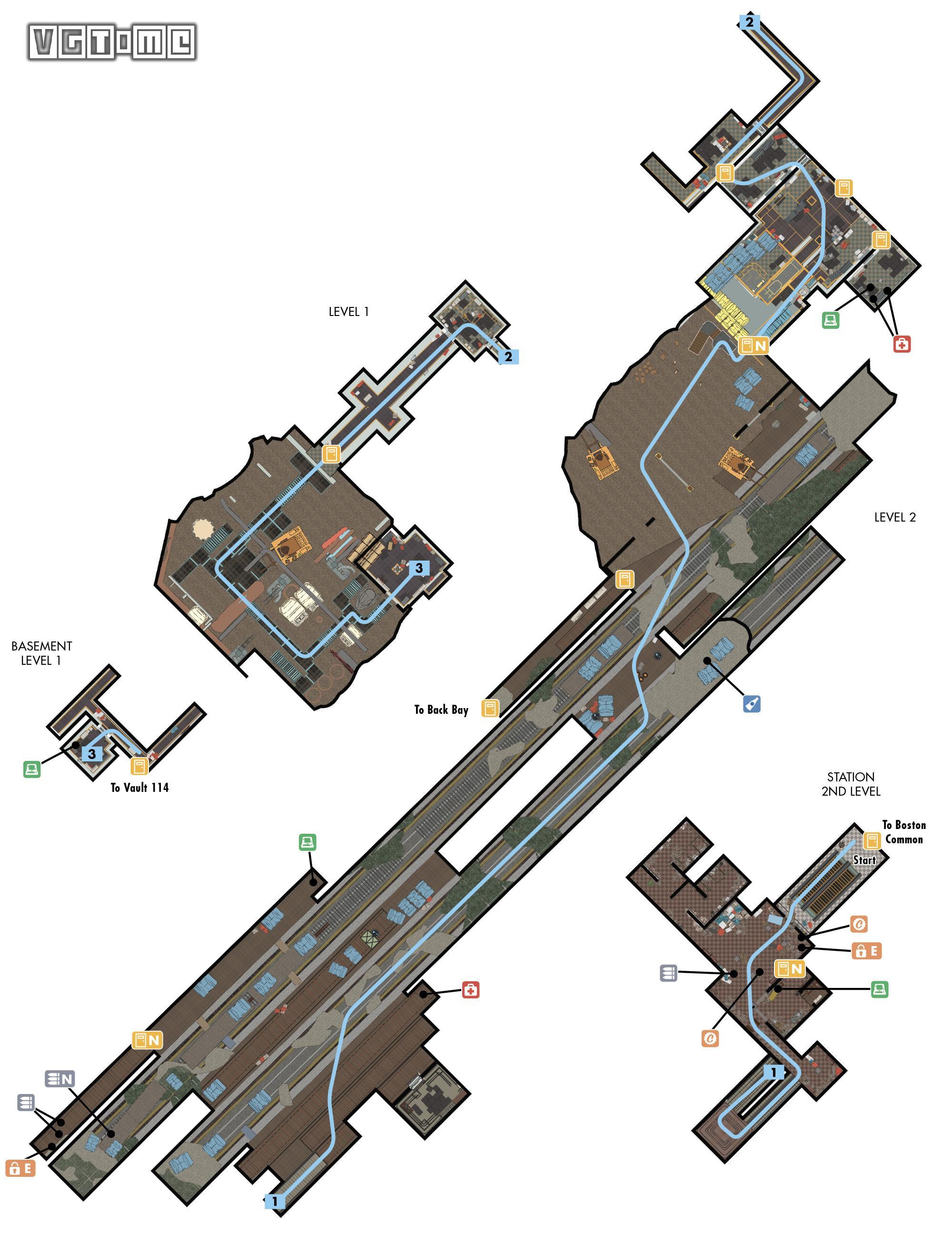 进入公园街站后,一路有很多西装革履的敌人,仿佛走进了硬汉派侦探小说。一路前进进入114号避难所,关着瓦伦坦的门口也有一个敌人,他身上有终端机的密码。用密码可以进入门旁边的终端机,打开门,和瓦伦坦对话。桌子上有让商人钱变得更多的演讲小人、漫画和卡带,不要忘了拿。