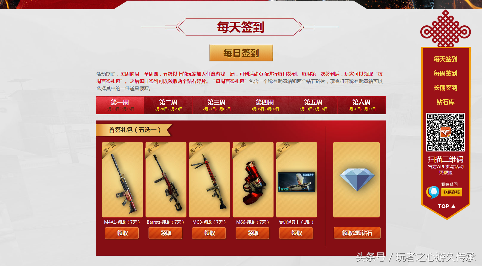 每日签到领取武器道具和钻石碎片