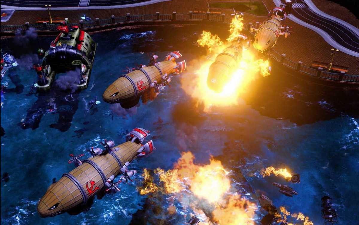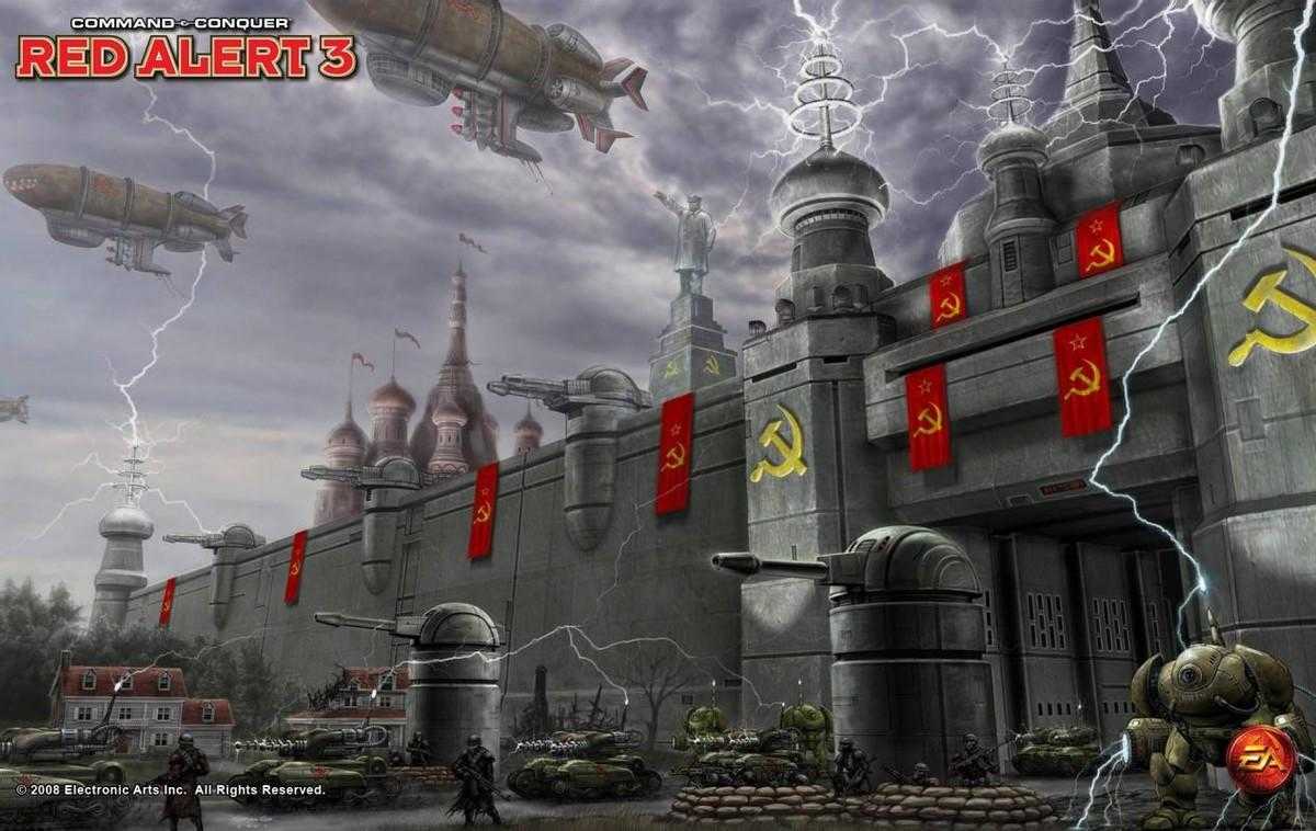 首先是大家熟悉的《命令与征服:红色警戒3》。在游戏故事中,由于苏联将军利用时间机器回到1927年,改写历史,让爱因斯坦消失在了历史中,因此盟军的科技优势不复存在。二战的结果也因此改变,一个新的旭日帝国(小日子过得不错的那个)出现。盟军、苏联以及旭日帝国三大势力,再次陷入到了一场虚构的“第三次世界大战”中。
