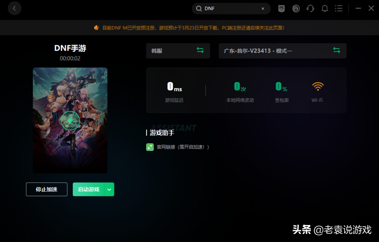 1、由于目前上线的是韩服,所以玩家们需要先打开奇游加速工具,对dnf手游进行加速之后再进入官网。