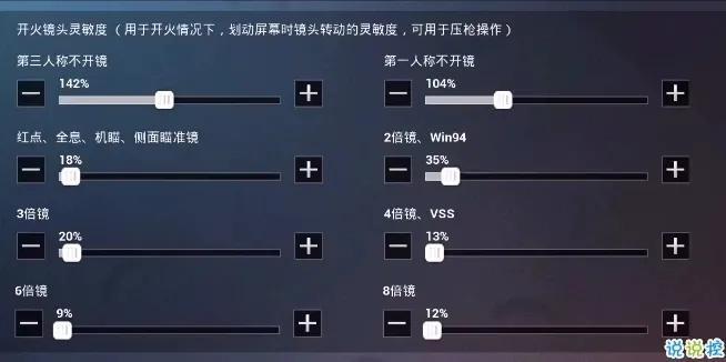 第二步就是调节灵敏度,转动屏幕弹道还是往上飘,那就是灵敏度太低了,需要调高开火灵敏度。如果转动屏幕,弹道落在目标左右,那就是灵敏度太高了,需要调低开火灵敏度。