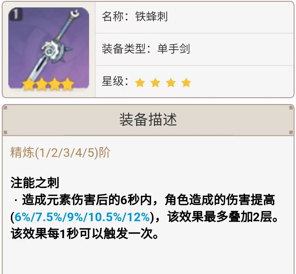铁峰刺作为一把锻造武器来说还是很人性化的,虽然现版本只有万叶能发挥它的威力,但还是无可否认的强,满级165的精通加成还是蛮高的,最重要的是,免费!