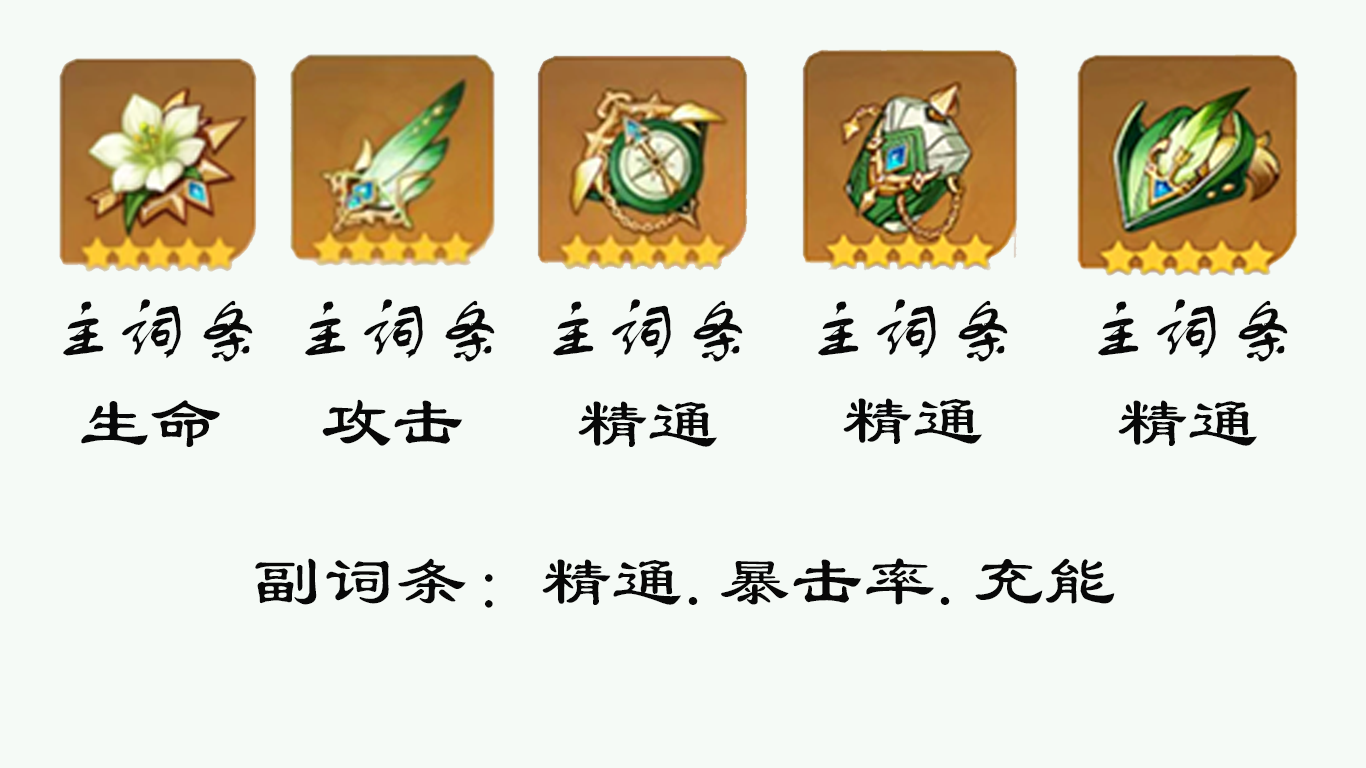 如果是想拿万叶打输出的话也能换上风伤杯,爆伤头哦,而且三精通刷过少女本的都懂