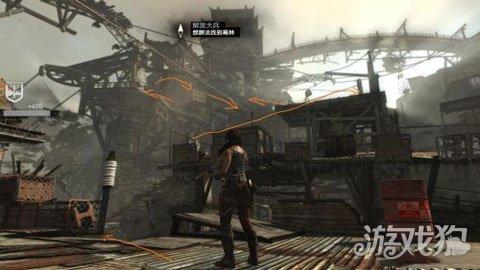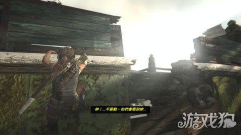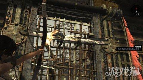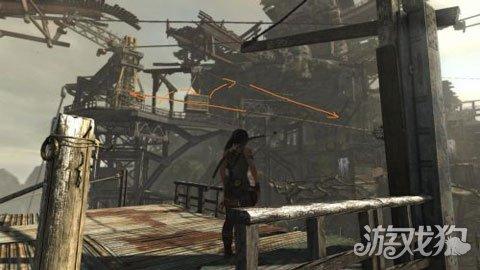 在货物上的时候朝着绳索方向大胆跳就好了。劳拉自己会捉住,落地以后会遭遇一小波敌人。