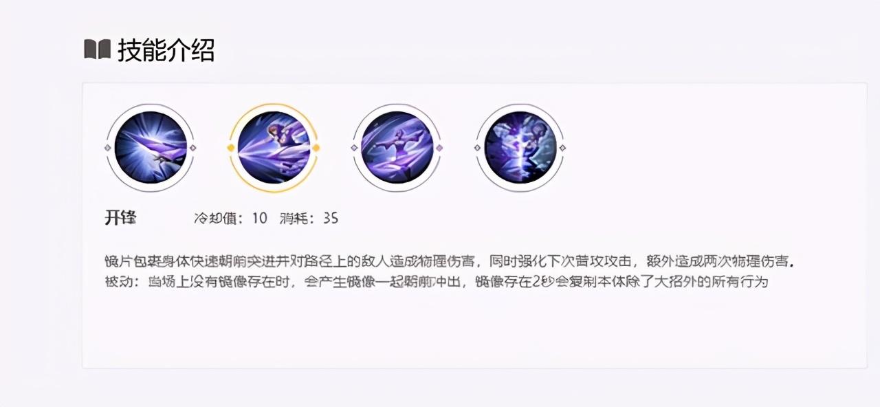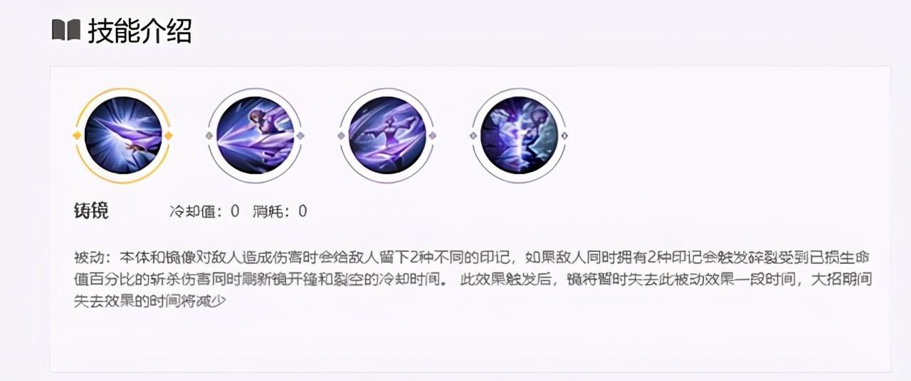 被动:镜的被动,用技能时会出来镜像,两者同时攻击敌人的话回提高受到的伤害 。同时会刷新技能。