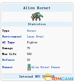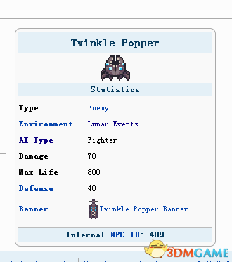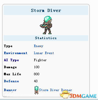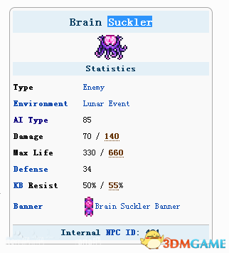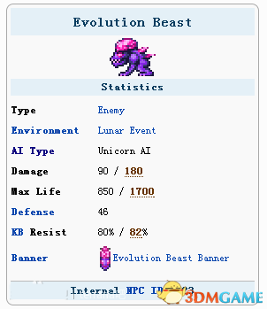 Type种类、Environment(生成)环境、AI TypeAI种类、Damage伤害、Max Life总生命、Defense防御