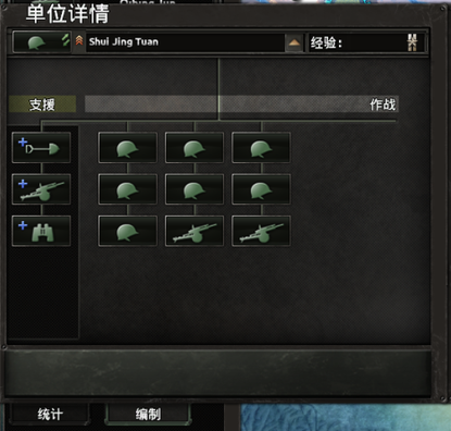 侦查:由支援连中的侦察连提供,此项属性主要是增加己方将领使用克制战术的概率,以及增加敌方部队情报的概率。
