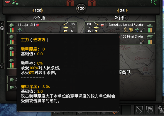 装甲厚度:攻击装甲厚度大于己方单位的穿甲深度时,己方的攻击力减半。