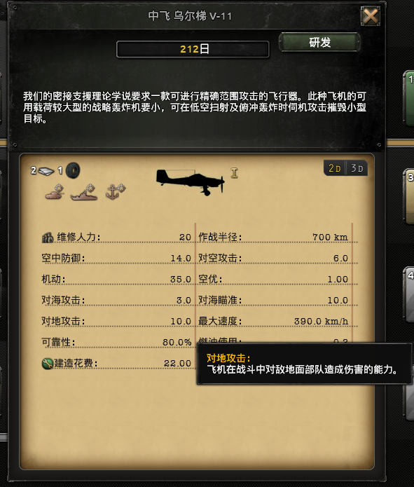 骰子数(1~4点)*1*0.05可简化为0.125/飞机对地攻击力,所以游戏中的空中优势实际上非常重要,一架10点攻击力飞机基本上等于100点陆军攻击了。防空炮,再一次亮相!