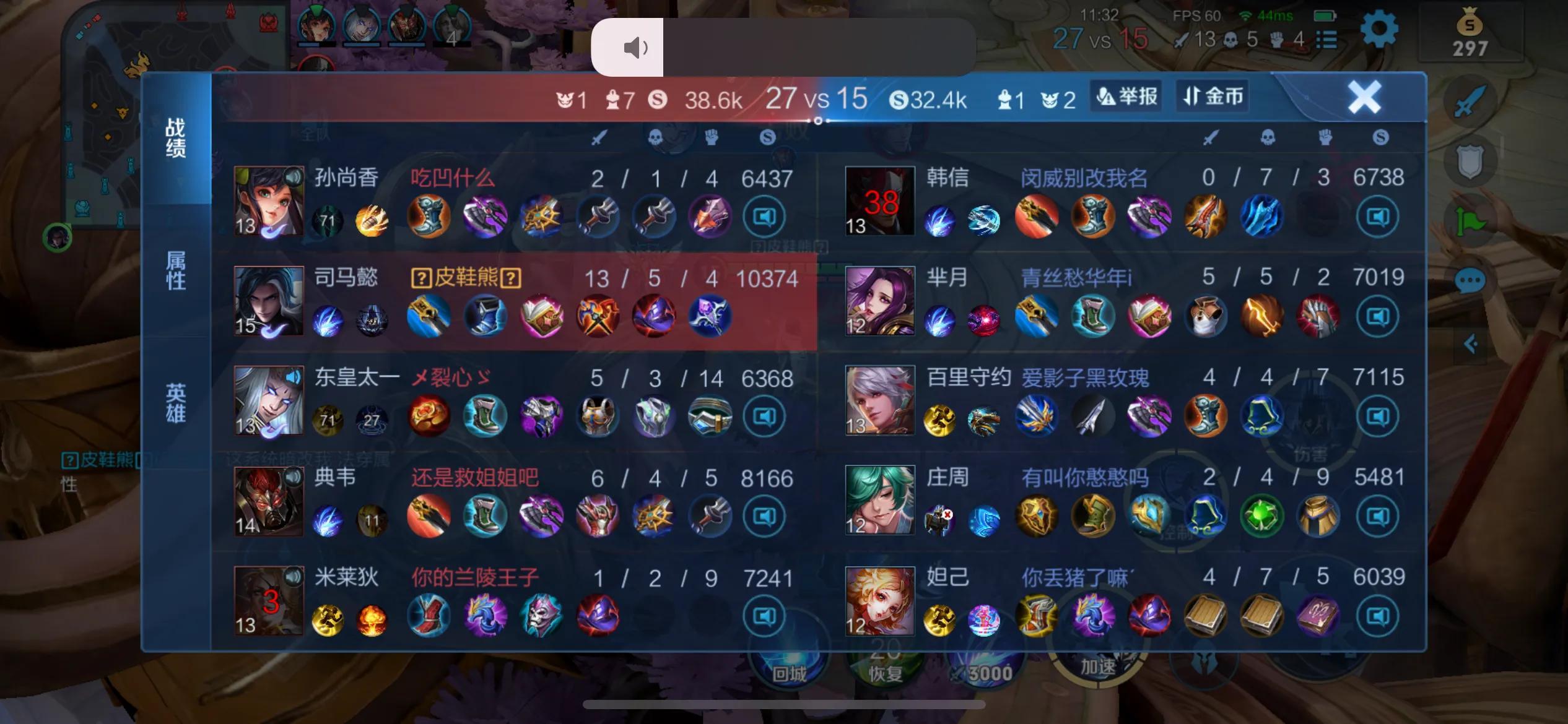 王者荣耀系统制裁实锤截图,经常连胜后就莫名其妙的伤害降低、攻速降低、网速慢、队友位置冲突也能排一起(系统无视预选,实则故意),经过多次测试每次四连胜后,系统就故意降低法穿(明明出了法穿鞋,但面板属性只有自带铭文的66法穿!鞋子如果卖掉重新买又正常,但过不了多久又显示扣除了法穿鞋的属性!
