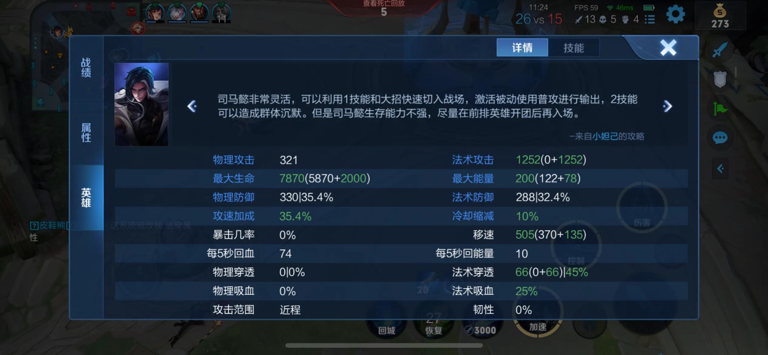 各位小伙伴也可以多关注游戏时自己英雄的属性面板数据!
