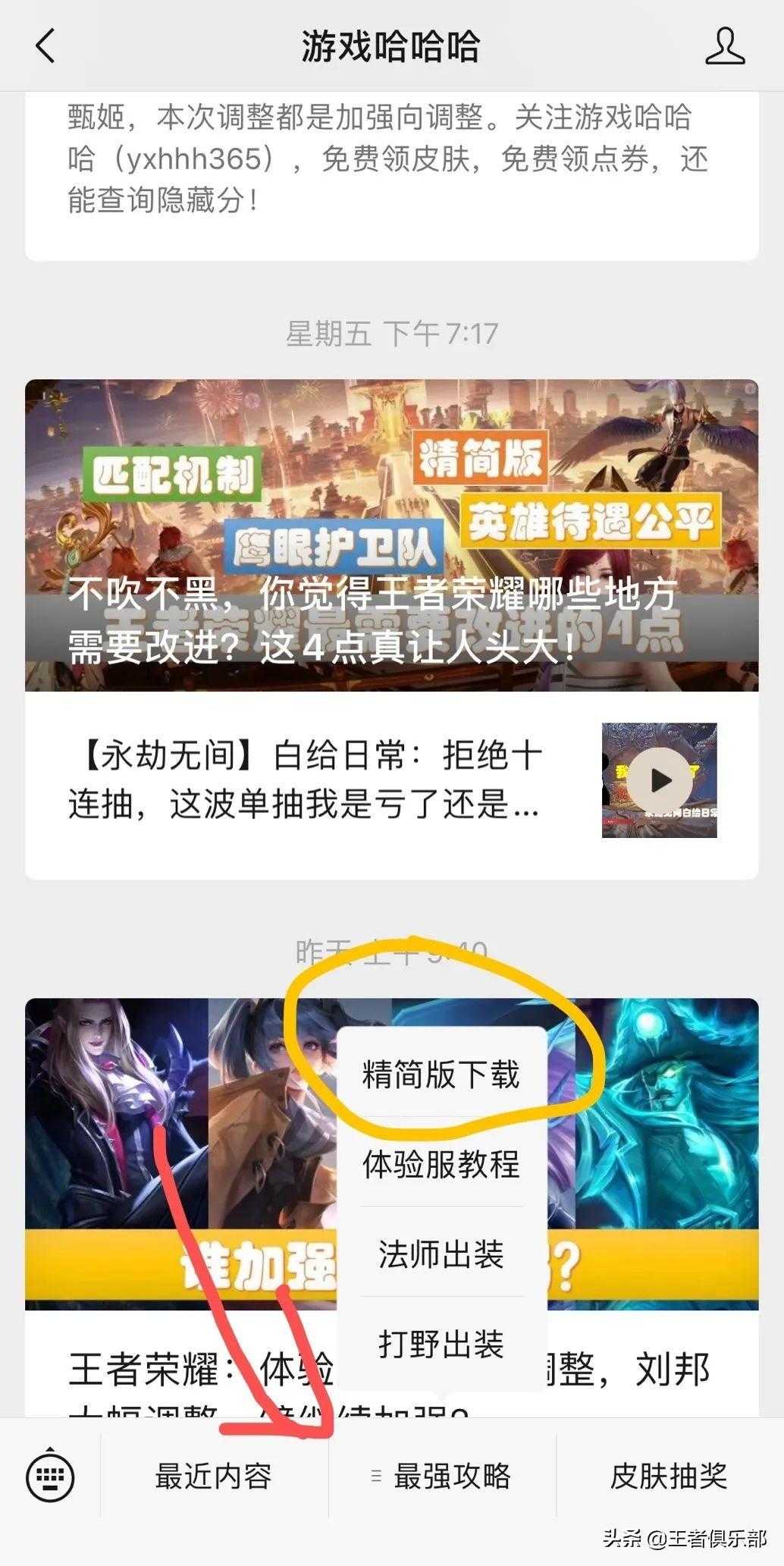 当然了,如果你比较懒,那么你也可以点击公众号今天这篇推送的“阅读原文”按钮,我已经把现成的王者荣耀精简版放到里面了,方便小伙伴们下载!如果还不行,你还可以通过公众号的菜单找到精简版下载!