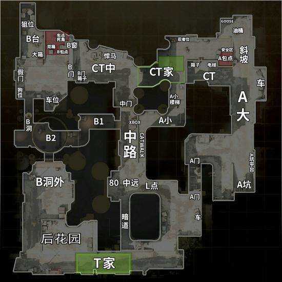 四.点位和报点,在打这个图之前,最基础的一个东西,就是要知道地图的各个位置分别在游戏中有着怎样的名字。这样哪怕你死了,也可以告诉队友对方在哪(休闲死了说话队友听不到,竞技才可以)