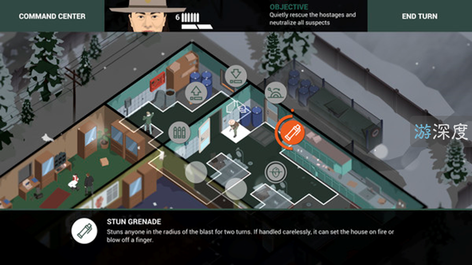 同时,2代相比1代也更为注重游戏性,比如玩法上加入了抓捕环节,采用回合战棋的方式出色还原警匪战斗过程。玩家需要指挥干员走位,可以选择隐秘潜入,掩护突击,或者直接对枪等方式来抓捕罪犯。各种细节设定也非常有趣,比如射中敌人手部他就无法持械而会选择逃跑,使用警棍则会让敌人暂时失去反抗能力等。