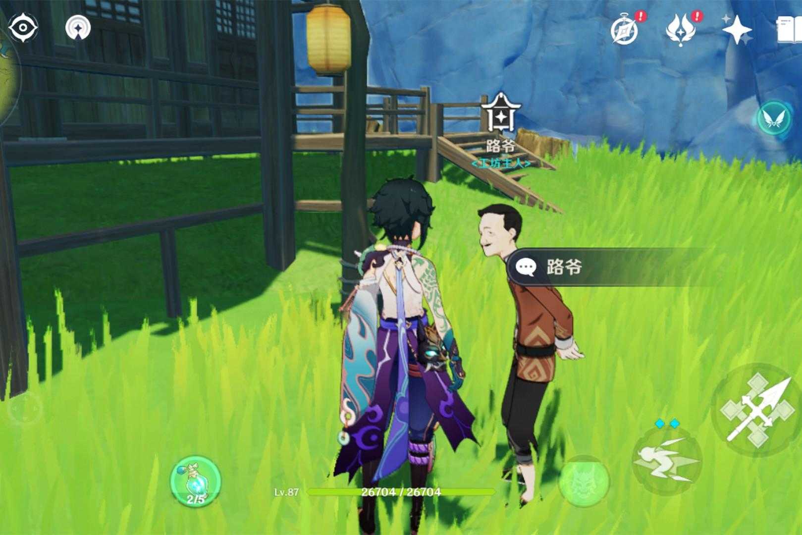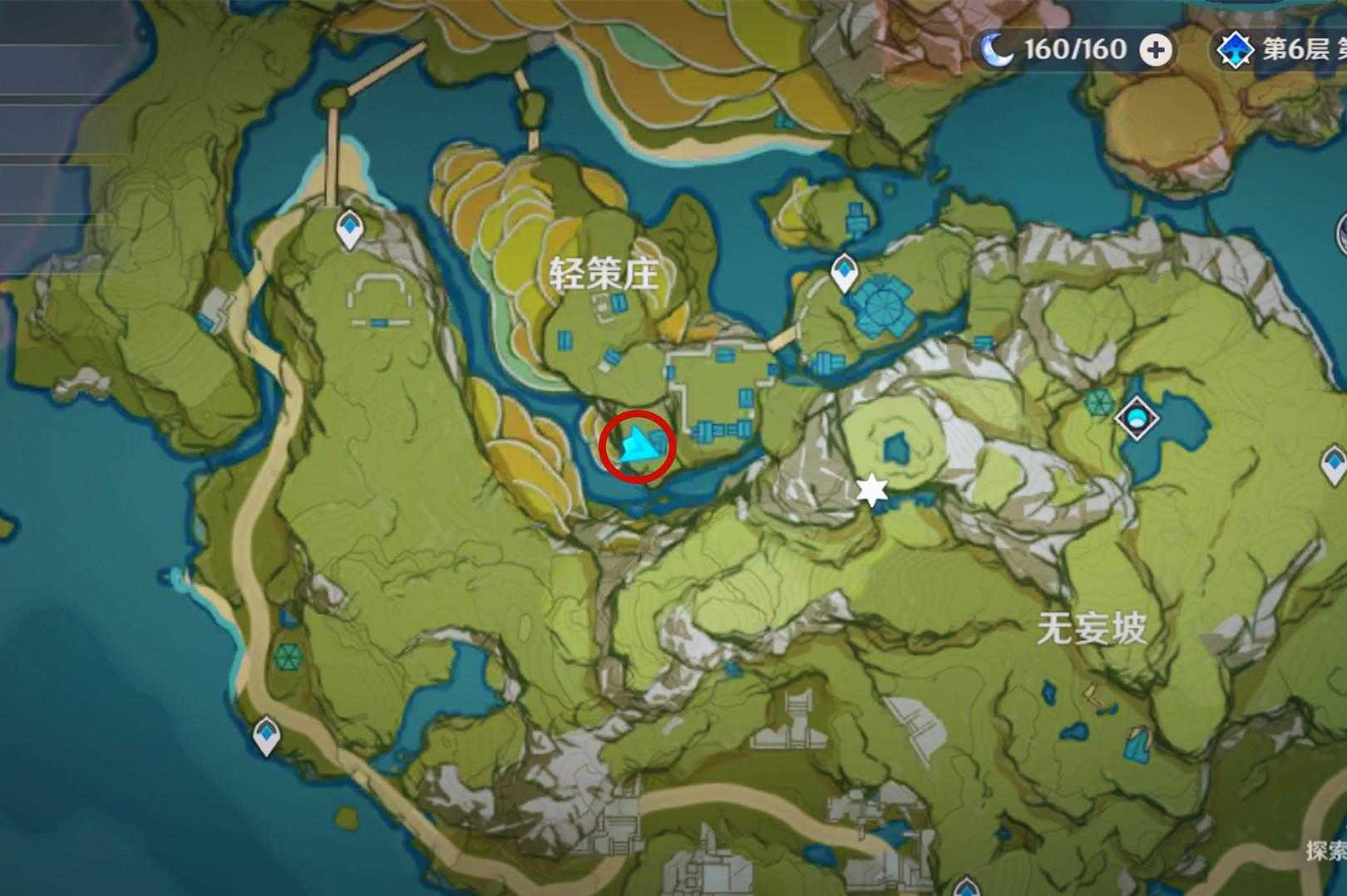 而璃月的图纸npc就在轻策庄这边,直接传送过去找到下图的位置,可以看到在木屋前一名叫路爷的老人,这个人就是璃月图纸npc。