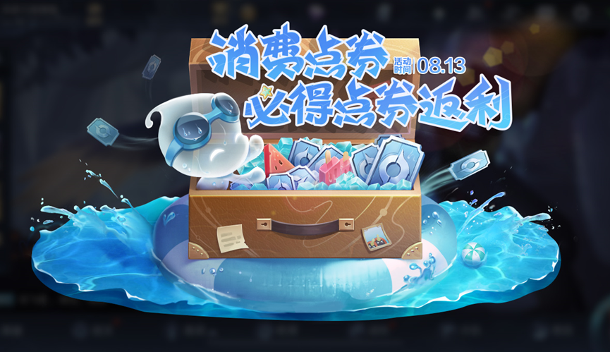 点券返利活动将在8月13日开启,当天消耗点券即可抽取比例返利,最高返还100%=白嫖=概率极低。