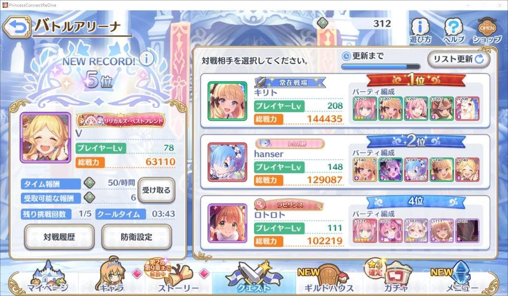 咱们先看一下公主连结的竞技场游戏模式的收益机制。