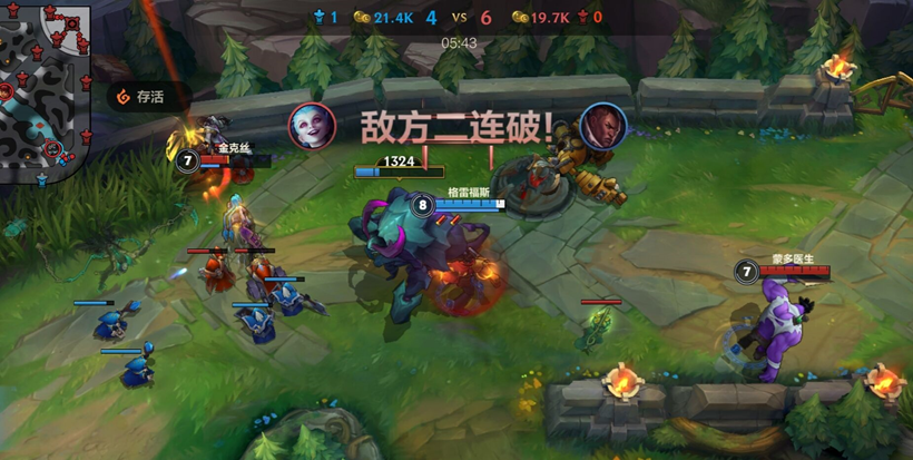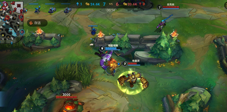 男枪本身没有控制或者留人技能,只有减速和一小段位移,所以抓人要绕后去gank或者反蹲。绕后Gank,只要对手压的兵线靠前,我们就可以开启扫描从侧后方尝试Gank,由于我们是有位移技能和减速的,也并不是特别一无是处,所以绕后时配合队友的控制很容易逼出闪现或者完成击杀。反蹲,但是并不是在草丛处反蹲,而是我们需要根据对方打野的刷野路线来判断我们需要在什么地方出现。比如你感觉对面打野在刷蓝要抓下,你可以提前在下路三角草或者一草蹲,这样我们第一时间能够支援到战场,往往可以扭转局势。
