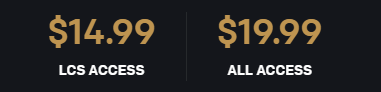 另外官网上也标注了“Pro View”的具体收费,只看LCS北美联赛直播的话是14.99美元(约合人民币104元),想要在全部的联赛中享受这项功能的话需要支付19.99美元(约合人民币138元)。不过具体的收费标准现在还不是很清楚,合理推测一下的话这应该是一个赛季的收费费用。