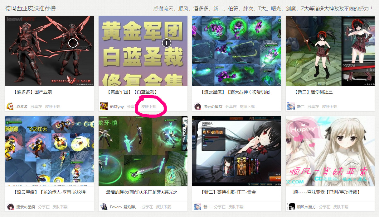 上面是他们的官方首页,我们可以看到,其内容大部分都是DIY皮肤,随意点开一个发现,皮肤不仅有源文件的下载、安装方法,还有游戏内的预览效果视频,可以说是一应俱全。