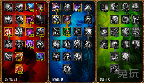AP的天赋,只不过我们没有蓝条,因此可以把通用里的9点天赋点到防御里,增加我们的一点防御能力。