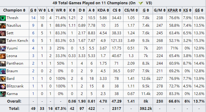 他的加里奥在夏季赛拿到了100%的胜率,在季后赛所有日本队伍面对V3时都将加里奥按到了ban位上,足以可见其熟练度和威慑力。
