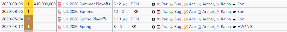 在2020年V3的新阵容在春季赛上就取得了不错的效果,常规赛第三的名次进入季后赛,可惜的是在季后赛中他们又碰到了DMF,又一次的败在了DFM的面前。但这一次V3并没有更换选手,而是选择保留原班人马继续征战夏季赛。
