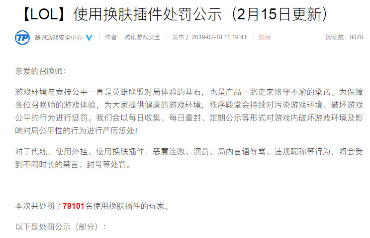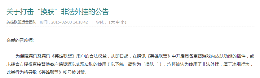 咳咳咳咳,关于使用皮肤插件被封的事,英雄联盟国服官方也是在多次发公告劝说玩家无效的情况下,才采取这样的措施。