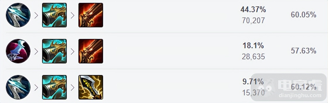 海妖杀手的真实伤害搭配上薇恩W的真实伤害,输出非常高!主要都是进行普攻输出的薇恩,能够很好地触发绿叉效果,破败的攻击特效和吸血效果对薇恩的收益也很高。后续可以补足无尽之刃,来大幅度提升伤害。