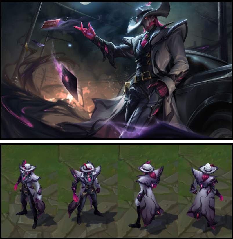 地下都市崔斯特,这个系列在早前的概念作品中有卡牌的皮肤,当前正式皮肤的样式和之前概念作品基本一致,脸上因为有面具的缘故因此看不清楚五官,游戏中的造型非常帅气,估计这款皮肤的炫彩也会好看,当年卡牌的地底世界让人眼前一亮,不知道这款会不会也有这种感觉。