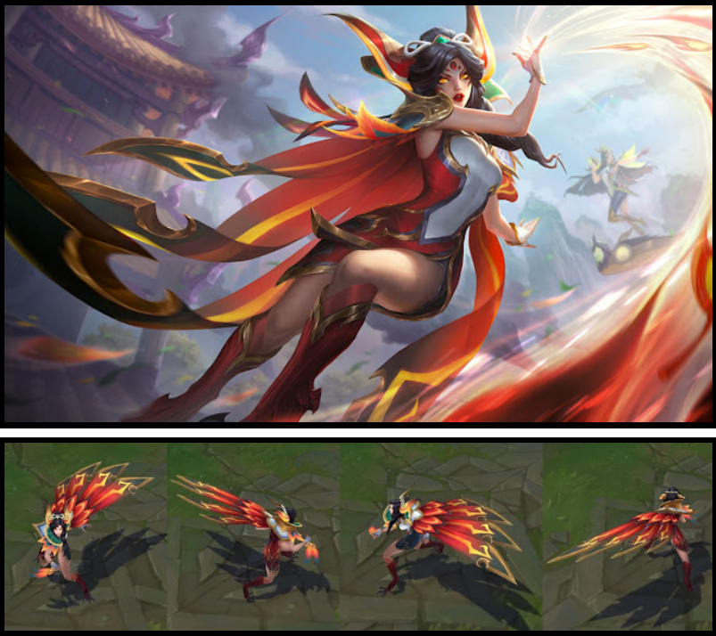 神凰行者艾尼维亚,凤凰这款皮肤有点惊艳,起码从当前的原画和模型上来看感觉很棒,模型方面是彩色的,原画上就有那种百鸟朝凤的感觉,原画右下角能看见霞,不知道和庆典女皇比起来哪款更华丽,完了,估计我要为凤凰这款皮肤率先剁手,钱包不保!