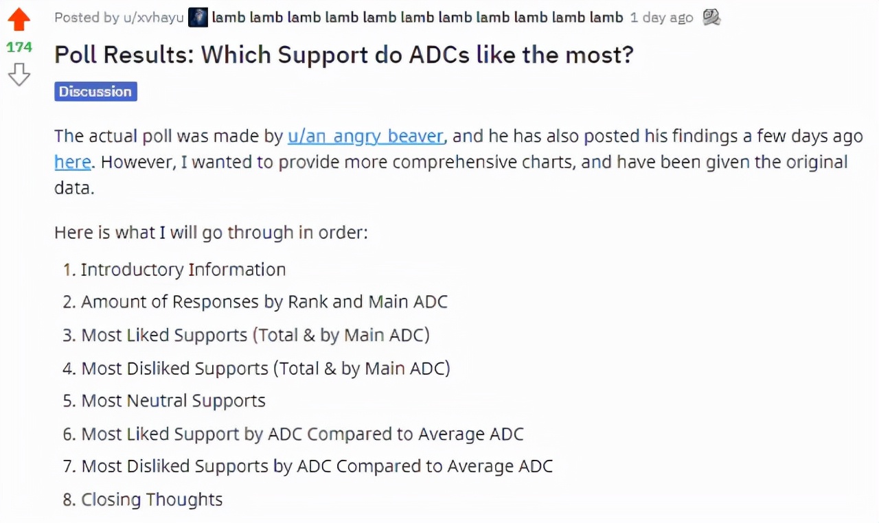 由于这个民意调查的绝大部分投票玩家都是ADC玩家,而且样本数据也没有非常大,玩家自然是存在明显的个人喜好,笔者毫不怀疑,如果是在辅助板块发起的投票,软辅英雄肯定更受欢迎。