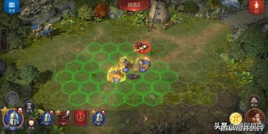 在探索地图的同时,还会遇到来自敌对势力的挑战,如果选择攻击他们,游戏会将画面切换成原IP老玩家熟悉的棋盘式战斗。受移动端界面适配的影响,《魔法门之英雄无敌:王朝》双方的出战单位并不多,每场战斗的配置大概在5个单位左右,但战斗开始前的配置选择与兵种之间的技能联动都需要细细的思索,其趣味性不亚于该系列的单机作品。