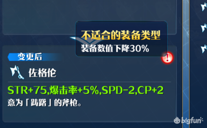武器除了强化以外,还是适用性的问题。每个角色都有自己擅长的武器,当使用其他类型武器的时候会受到30%数值的惩罚,所以大家尽量给自己的角色装备他擅长的武器,来避免武器惩罚。