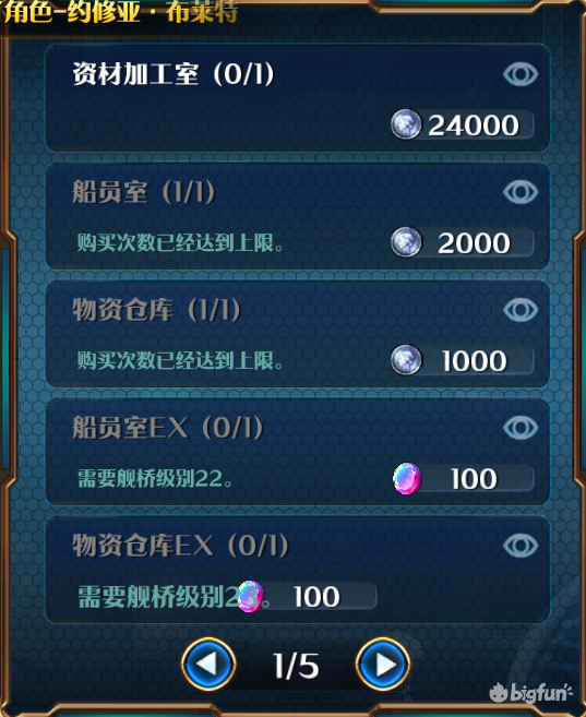 点击空白的舱位会先提示解锁船舱,解锁后可以建造为功能舱。其中有一些功能舱是需要优先建造出来的。因为对于平民玩家来说,这些舱位是关键的资源来源。其中包括遗产保存室、会计师、会计师EX、耀晶片生产室、资材加工室、远征准备室。