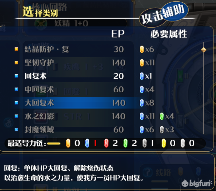 玩家可以在这些结晶孔上镶嵌回路,每个回路都有自己的属性值。分别为地火水风时空幻七种属性。当每条链接上镶嵌的回路属性达到一定的数值就可以解锁魔法了! 稀有度越高的魔法,所需的属性数值也越多。而要想在有限的链条孔上积攒出这些属性数值,也就更需要哪些稀有的回路!