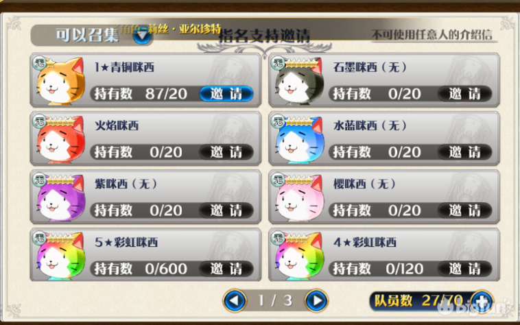 这里要跟大家说一下,一般三星角色泛用性都比较小,培养的价值不大。可以用做狗粮使用,或这个给狗粮咪西觉醒升级用。同时非强力角色或者真爱角色,不建议喂火焰咪西来提升战技等级。战技等级靠吃同名角色升级。石墨咪西的获取途径也非常稀少!一定要留下来不要乱吃~