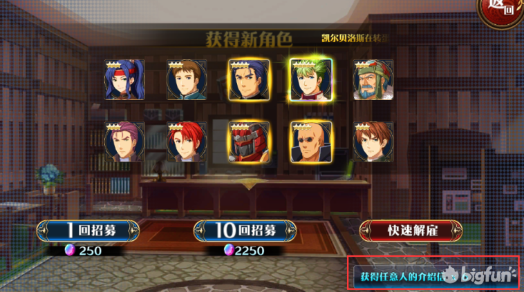 剧情招募:剧情中会赠送招募券,奖励也比较固定,最后一抽也会固定奖励一个角色,属于新人福利。