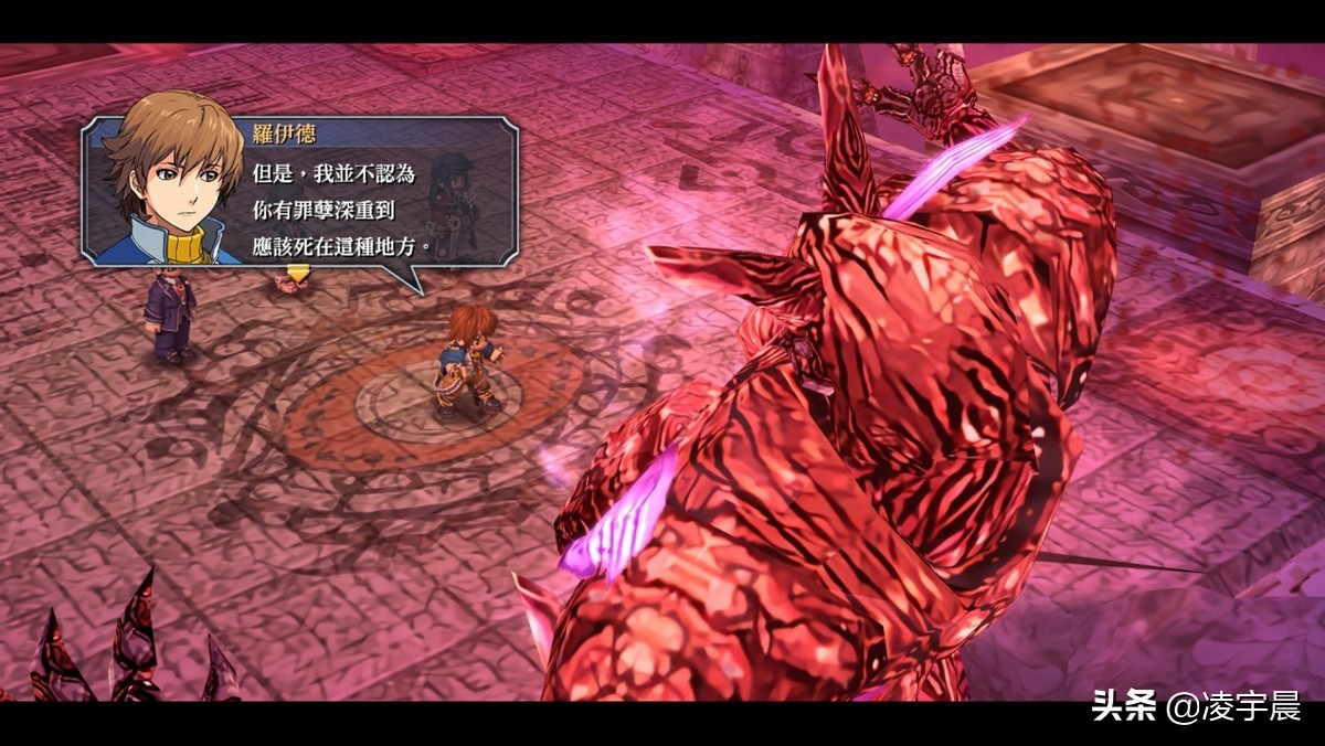 一路经历了4人组大杀四方、2人小分队单独行动,全图探索大肆搜刮(误)并消灭各种魔物之后,他们终于在旧址深处逮住了两人。和《零之轨迹》结尾处相同的对战魔人BOSS,勾起了罗伊德·班宁斯以及屏幕前玩家们的回忆,只不过这次的魔人BOSS显然是削弱版的并不会有当时那么大的压迫感,有风之剑圣作为主力DPS大家有惊无险的击败了BOSS。
