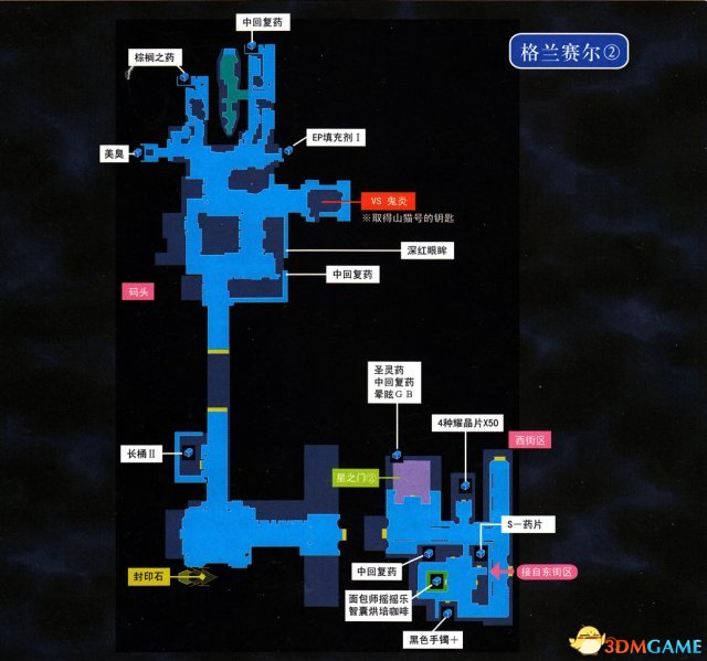 接着进入西街区。收集宝箱、调查星之门②之后向码头进发,在码头东北角仓库内发生强制战斗(敌人弱风、同时物理防御力比较低,直接砍死就行了),战斗后获得山猫号的钥匙,接着就能进入停靠在码头最南部的山猫号了,在山猫号内获得封印石,回到据点解封,乔斯特加入,王立竞技场入口结界解除。