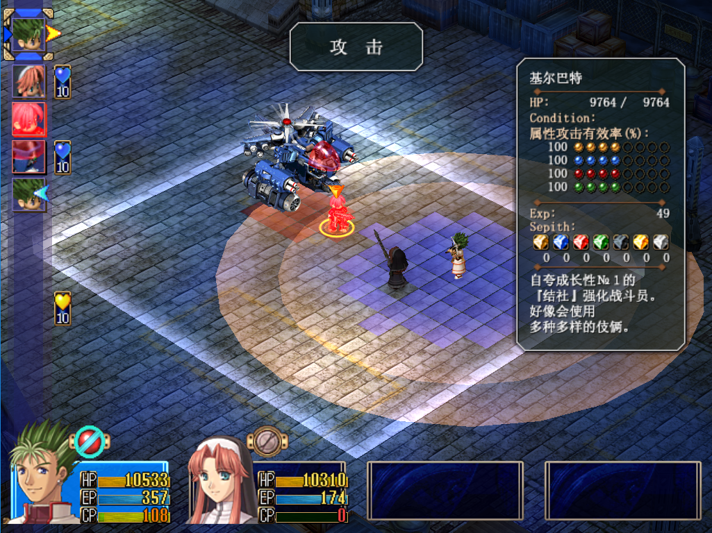 除了剧情内容比FC更加丰富,《空轨SC》在人物关系上也设置的更加完整,同时根据不同人物之间的羁绊关系,游戏内的剧情也有所不同,这是SC做的做好的地方。最典型的就是在游戏的最后部分,玩家到达浮游都市与"噬身之蛇"的成员战斗时,携带不同的队友进行战斗时就会触发不同的剧情。比如携带雪拉扎德和"幻惑之铃"露西奥拉作战、携带金和"瘦狼"瓦鲁特作战等,都有独特的剧情对话。