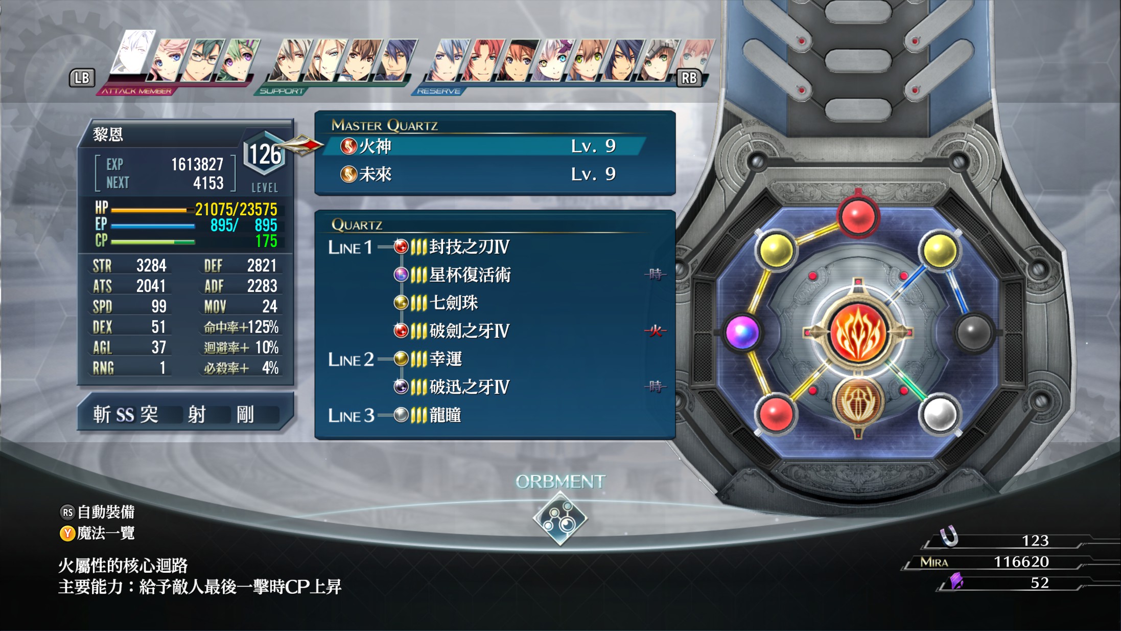而除了资源转换,另一个核心思路在于“时间控制”,即通过BP技能(比如卢法斯)减少驱动,利用导力器链路减少僵直,然后利用队友(比如马奇亚斯)拉人重置“延迟”形成的“敌不动我动”的连续攻击,基本上两主力两拉人是从空轨以来的传统BUG组合,由于游戏本身的难度不算高,建议普通难度不要使用以免破坏游戏体验,组一个养眼的队伍就好~。
