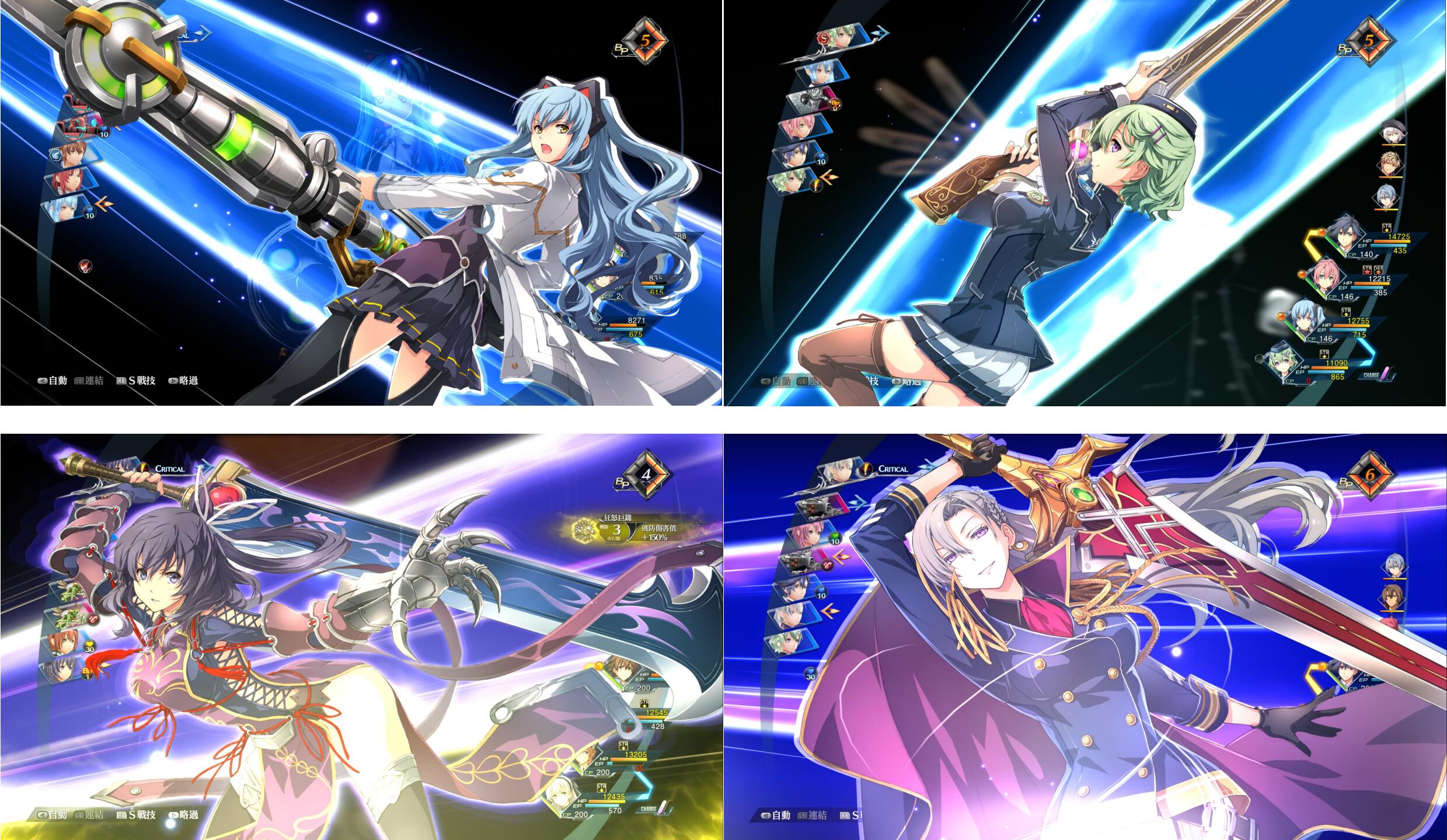 而在BP以外第三环的系统是“奇袭”,当队伍拥有5人或以上(不包含已倒地的)时可以发动法术、攻击或者治疗奇袭技能,奇袭技能会让所有队员(包含extra位)完成数次攻击、获得2-3BP(治疗奇袭除外)和额外BUFF效果,毫无疑问奇袭点数与BP之间的转化形成了一种巧妙的“资源转换”关系,而BP点附带的“破防”效果又可以累积奇袭量表,从而实现了战斗中资源转化的一种可行性。而这仅仅是创轨中资源转换的冰山一角,事实上HP/EP/CP/BP之间都存在着各种技能实现相互的转换(比如法术攻击涨CP、战技回HP回EP等)。